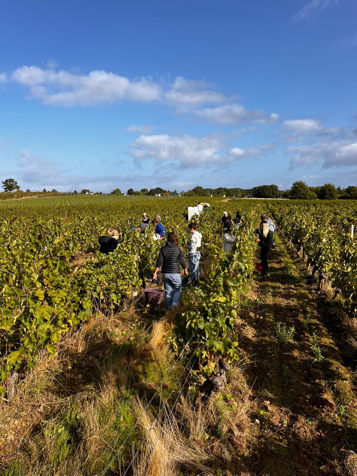 Grâce à leur travail précis et à leur énergie, chaque parcelle est récoltée avec soin, garantissant la qualité des raisins et du futur millésime.